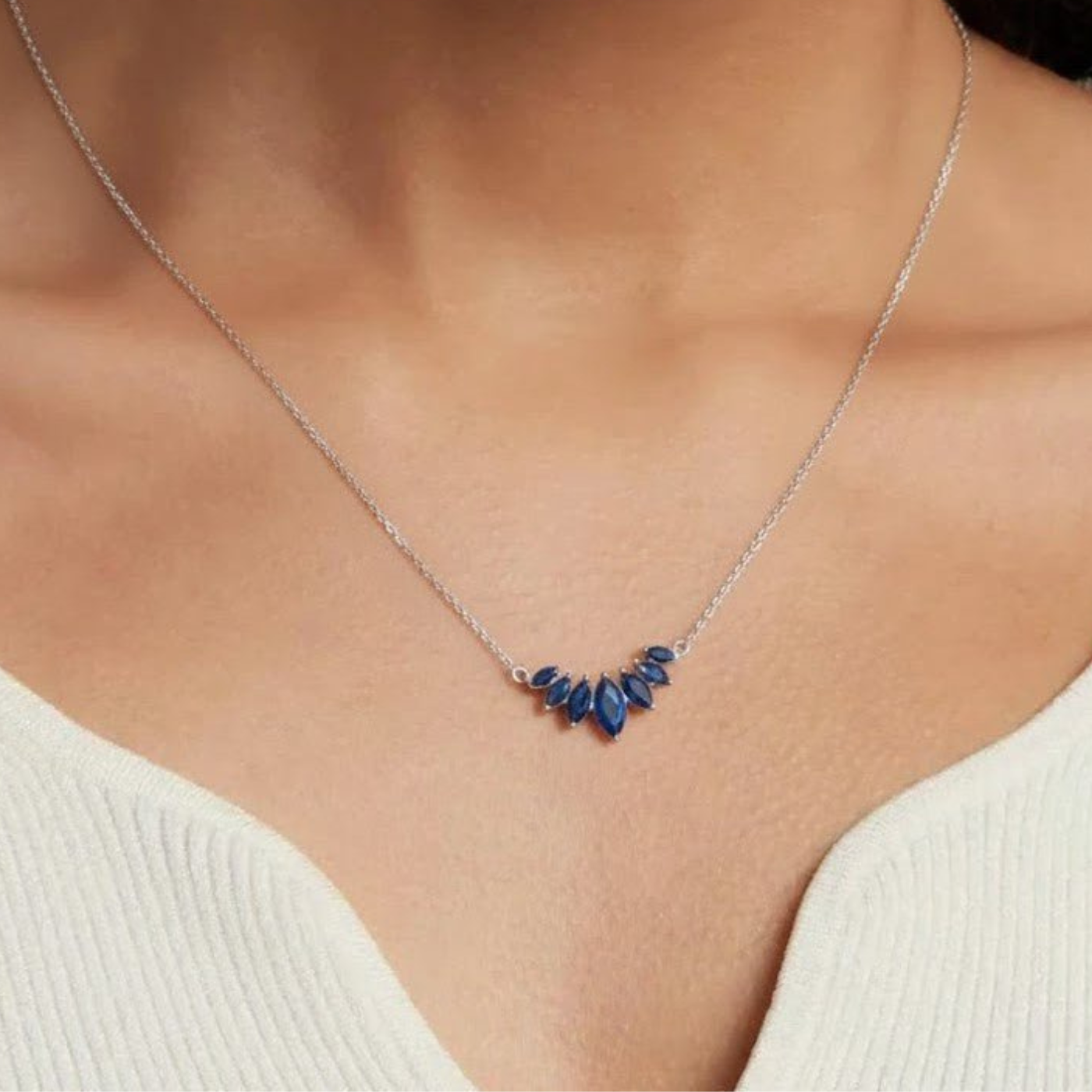 Blue Marquise Silver Necklace