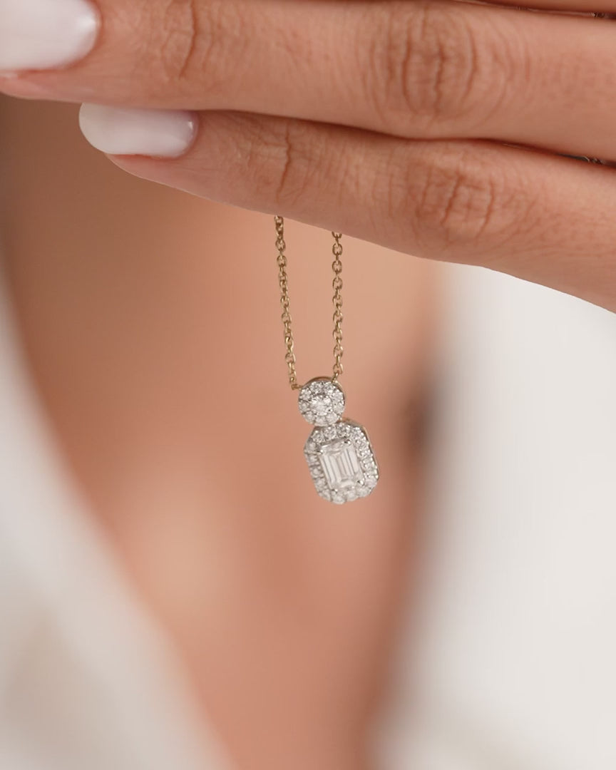 Emerald Cut Drop Halo Necklace