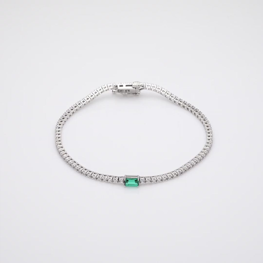 A timeless tennis bracelet elevated by a striking emerald center.Surrounded by white zircon stones that enhance its vivid green glow.An elegant statement designed to shine, day or night.